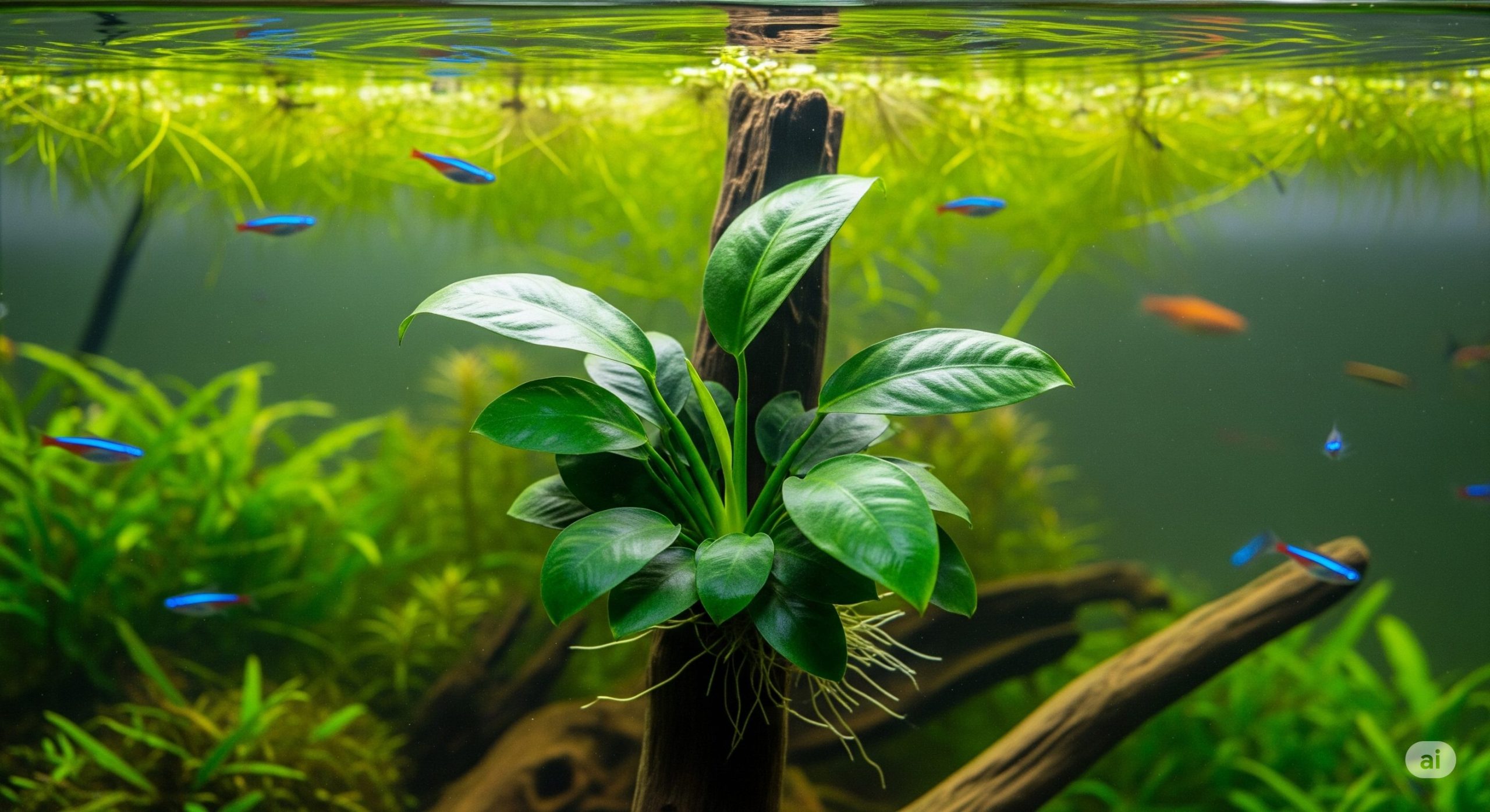 アヌビアス・ナナは、もともと木陰に自生する「陰性水草」です。そのため、強すぎる光は大きなストレスになります。