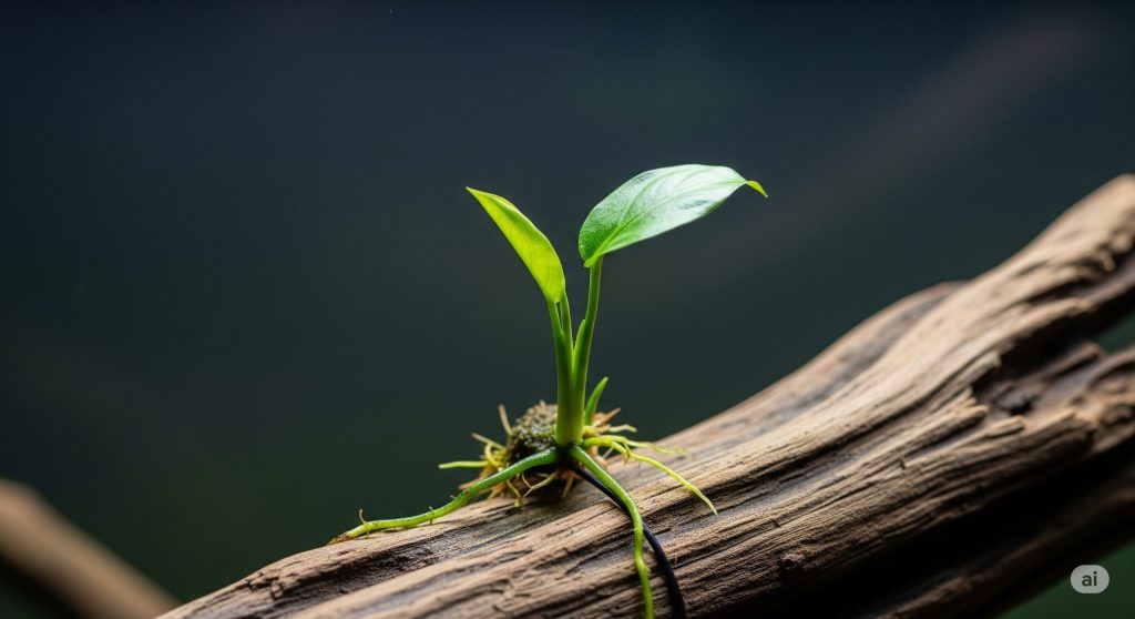 - 病気への抵抗力低下: 人間が夏バテするように、アヌビアス・ナナも体力が落ち、病気にかかりやすくなります。特に、根茎(こんけい)と呼ばれるイモのような部分が腐る「根腐れ」を起こしやすくなります。
