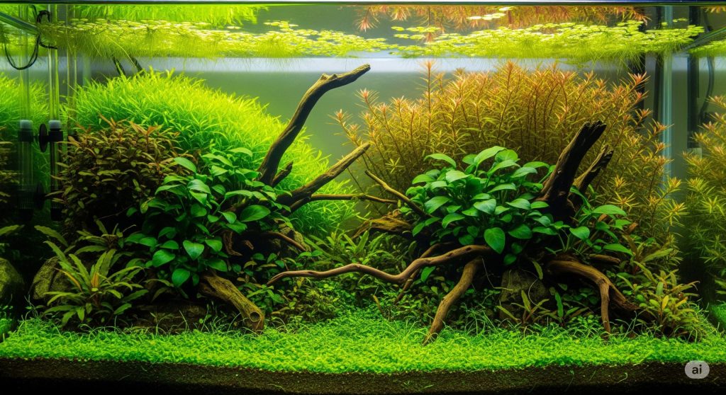 - 水草の投入: マツモやアナカリスのような浮き草や、アヌビアス・ナナのような葉の広い水草は、泡巣の土台にもなり、ベタを落ち着かせます。