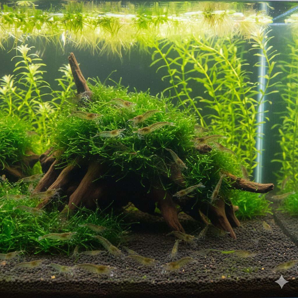 - 隠れ家は残す: エビが全滅しないよう、ある程度の隠れ家(流木や水草の根元など)は残してあげましょう。バランスが重要です。