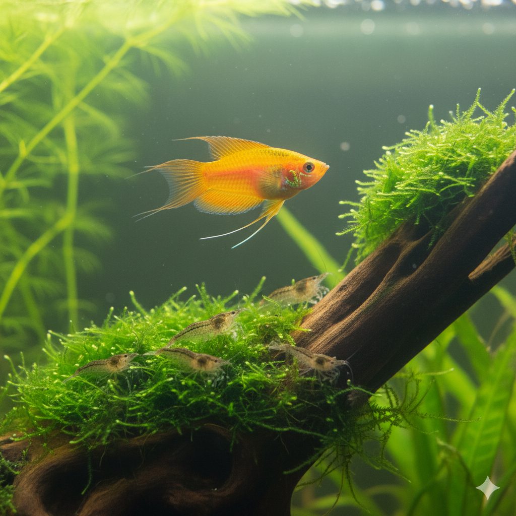 水槽内に適度な「天敵」を導入し、自然に近い形で個体数をコントロールする方法です。主に稚エビを捕食してくれるため、成体のエビを残しつつ、爆発的な繁殖を抑える効果が期待できます。